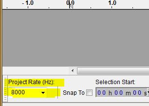 - In Audacity, set the 'Project Rate (Hz)' in the bottom left hand corner to ‘8000’.